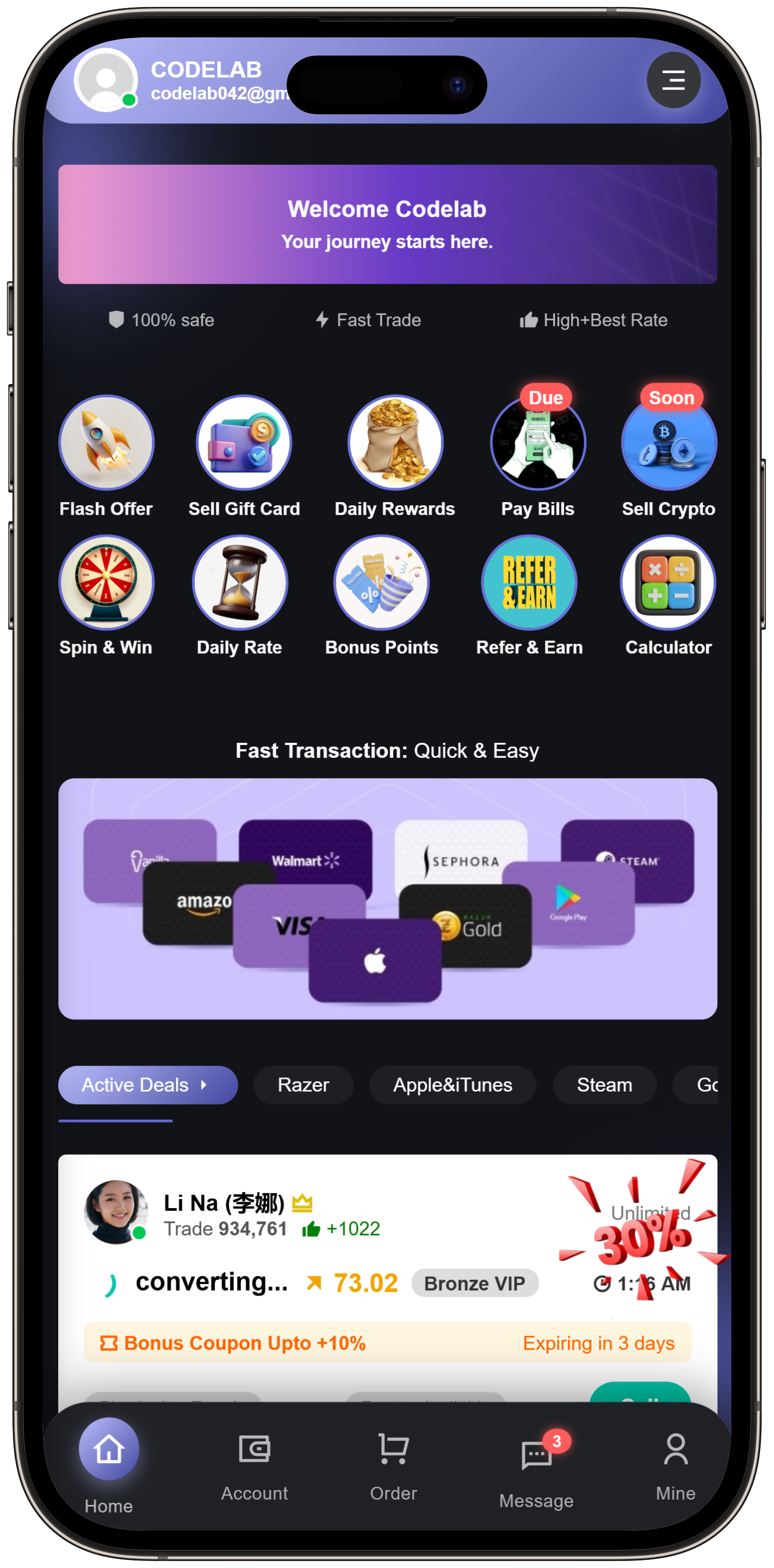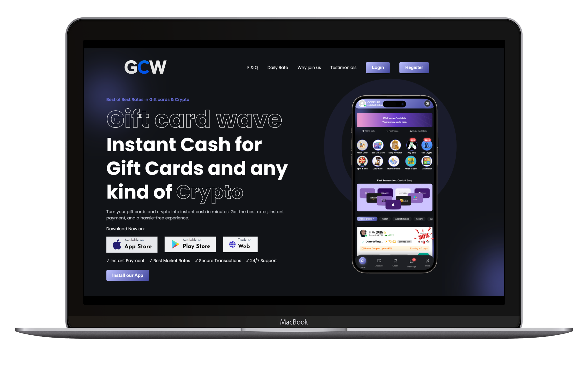 Turn your gift cards and crypto into instant cash in minutes. Get the best rates, instant payment, and a hassle-free experience.